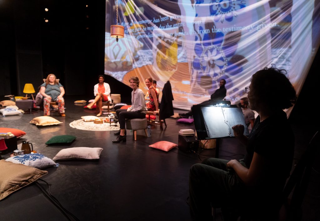 SL: I mean, especially, I think for you as a playwright it’s something to think about. Basically, it means that the choices you make about the form of how a story is delivered should be informed by the central questions or the content of what you’re asking. For example, the piece that you mentioned is called This Emancipation Thing – it has a lot of audience participation in it, and it is based on archival documents of feminist activists in the 60’s and 70’s, getting together and talking about their personal experiences around different feminist issues. The question that I had in that piece was “what use is this tool for us now?” Like, what might this history mean to us now? Do we want to carry this technique forward in activism? And so, the form that follows naturally to me, based on that question is, “let’s get the audience involved in actually doing it and see what happens.” So that’s an example.